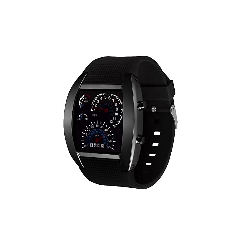 MINILUJIA Unique Cool Creative Fashion Simulate Car Dashboard LED Display Men Sport Wristwatches Rubber Watch Band (Black)