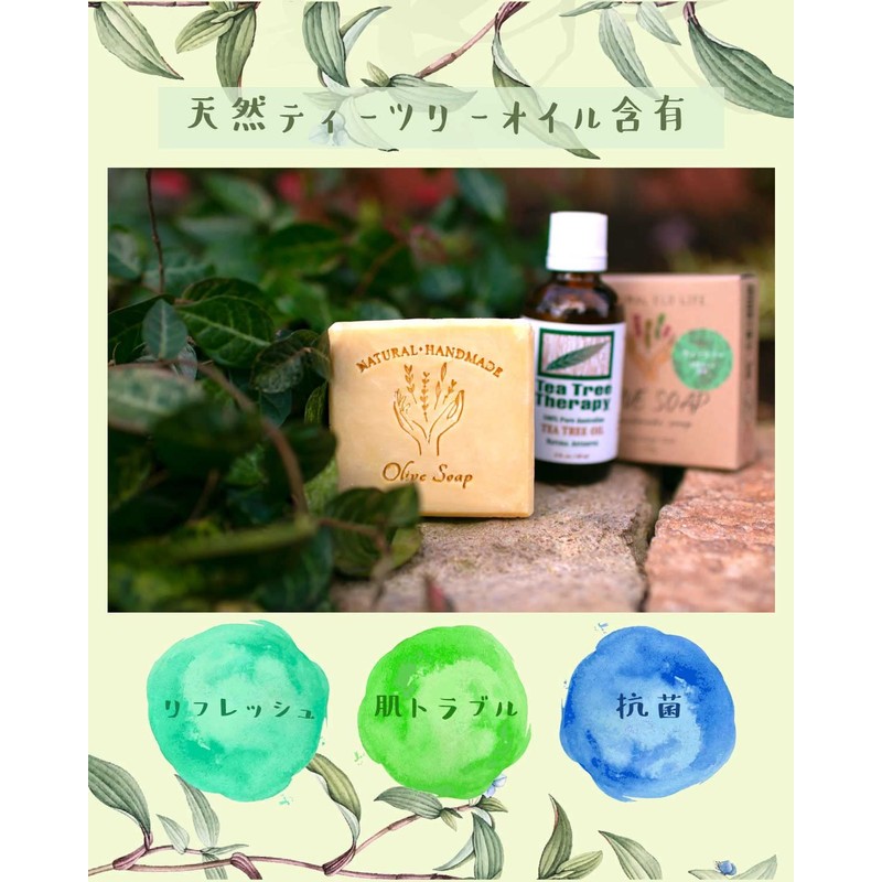 Minimal Eco Life Olive Additive-Free Soap (Face Washing, Whole Body, Sensitive Skin, Moisturizing, Organic, Handmade, Natural Material, Solid Soap, 3.9 oz (110 g), Natural Tea Tree,