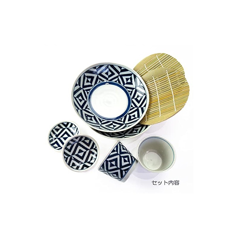 Minisara Soba Dinnerware Set, Zaru Soba Set, Edo Pattern, For 2 People, Buckw...