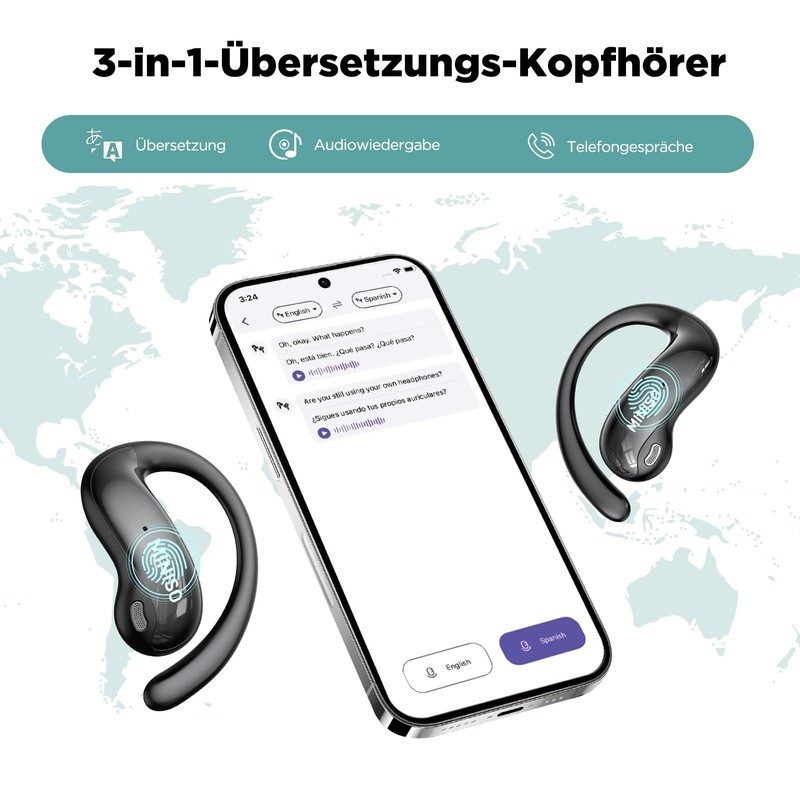 - 3-in-1 earphones with HiFi sound: These translation headphones combine translation, music playback and call functions. You can listen to music, answer business calls and overcome voice barriers. The headphones offer lossless sound, stereo sound field and a unique experience when listening to music, watching movies or playing games, enhancing immersion by the sound quality.