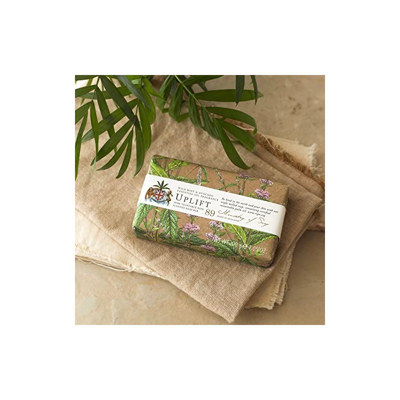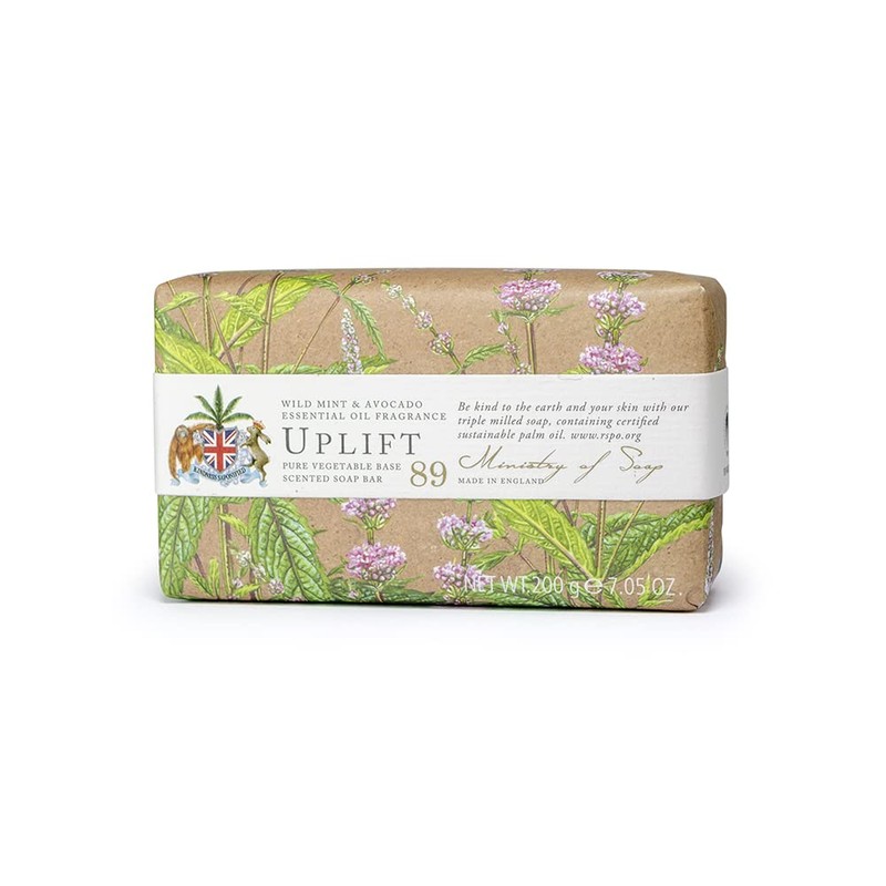 Ministry of Soap Natural Wellbeing Wrapped Soap Uplift, Naturally Coloured, Triple-Milled Soap, Wild Mint and Avocado 200g