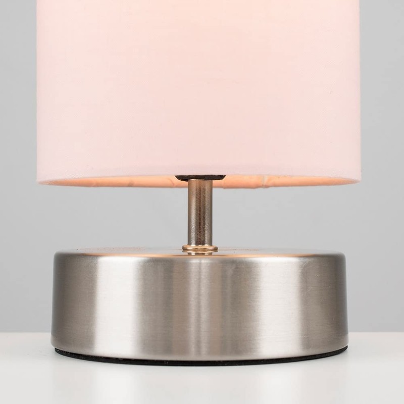 - TABLE LAMP - Update your living space with the latest trends in lighting with these Modern Chrome Touch Table Lamps with Pink Light Shades. Mixing quality materials and stylish designs, our range of products are perfect for adding a modern style to your home.