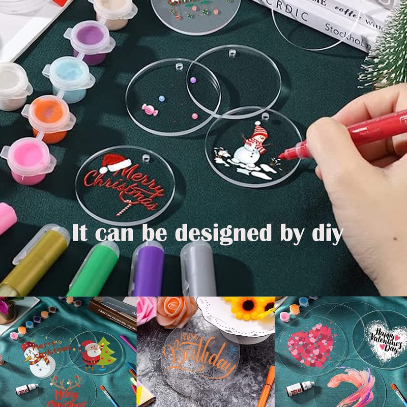 Minlon 20 pieces acrylic transparent circle set, clear acrylic plates, round acrylic discs, Christmas tree decoration for DIY craft project sign picture frame display