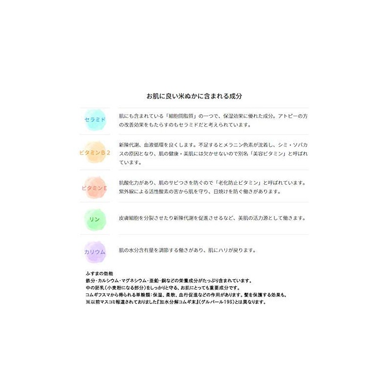 The ingredients are completely additive-free facial cleansing only rice bran and wheat bran.