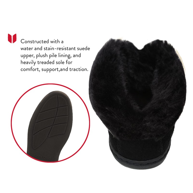Minnetonka Women's Sheepskin Ankle Boot 8 M Black