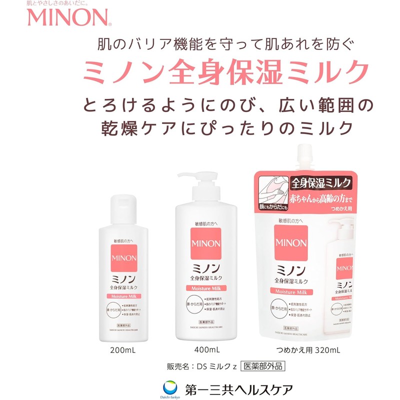 Minon Whole Body Moisturizing Milk Refill, 11.8 oz, Sensitive Skin, Anti-Drying, Hypoallergenic