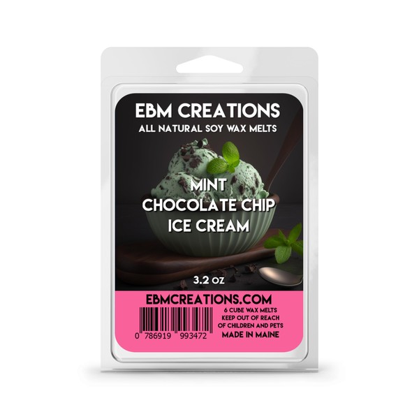 Mint Chocolate Chip Ice Cream Soy Wax Melts - 3.2oz, 6 Cube Clamshell, All Natural, Highly Scented, Long-Lasting Aroma, Premium Quality, Handmade, Non-Toxic, Eco-Friendly