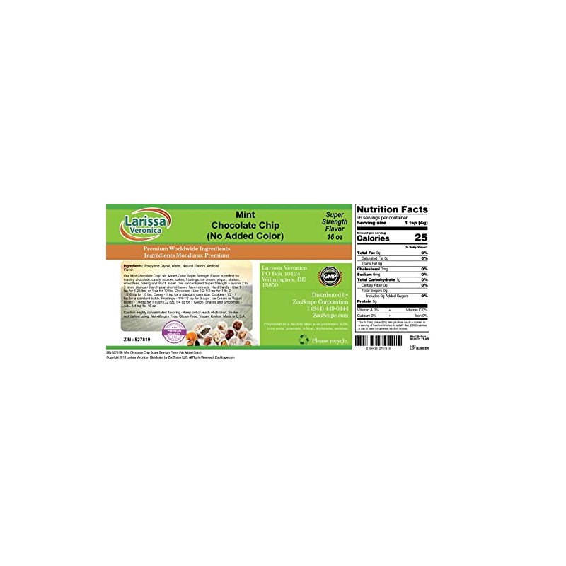 Mint Chocolate Chip Super Strength Flavor (No Added Color) (16 oz, ZIN: 527819) - 2 Pack