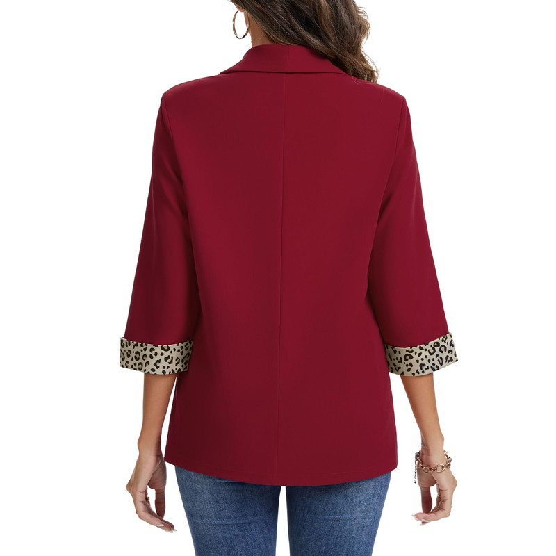 - Leopard Print Cuff: The unique leopard print design cuff makes this jacket stand out, offering a chic and fashionable touch to everyday wear while maintaining professionalism.