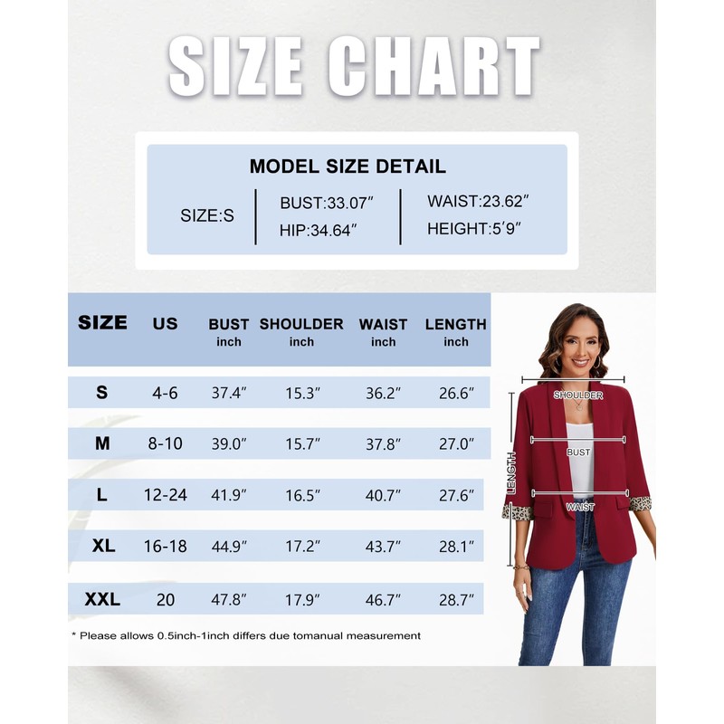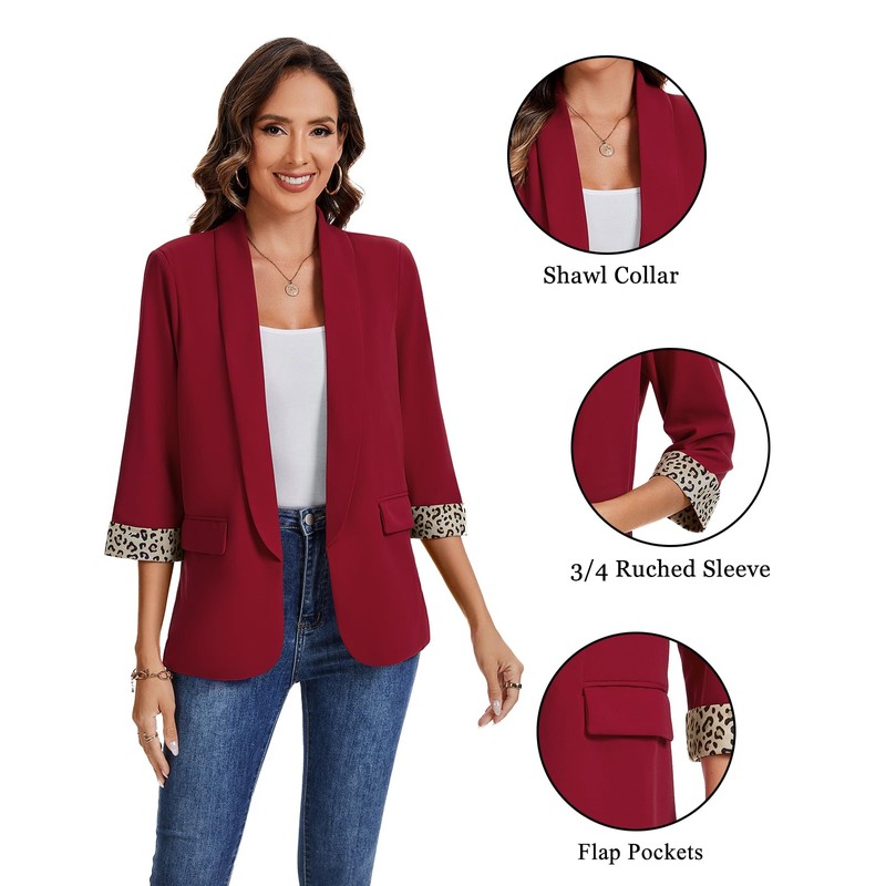 - Versatile 3/4 Sleeve Cut: Featuring a 3/4 sleeve length and open-front style, this partially lined blazer is ideal for staying stylish and comfortable year-round, whether in warm spring/summer or cooler fall/winter weather.