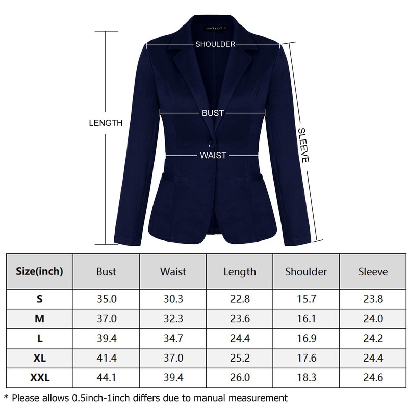 - 【Feature】:This women's suit jacket from MINTLIMIT features Long Sleeve,Notched lapel,Plain,One Button,Two-side Jetted pockets,Cropped Length;A solid suit coat is a classic style that features a single color or tone throughout.It is a versatile option that can be dressed up or down depending on the occasion.