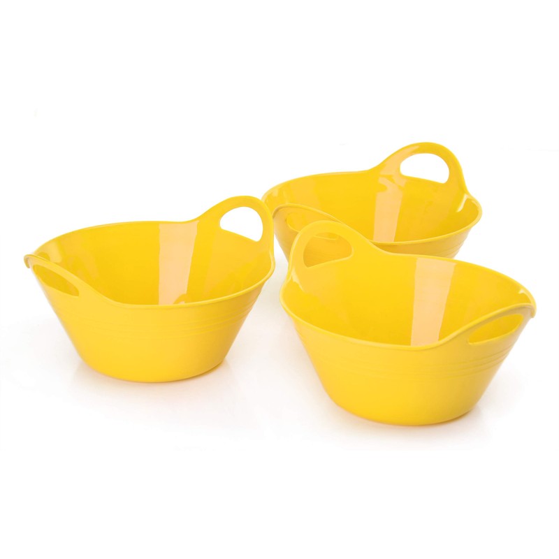 Mintra Home Plastic Bowls with Handles (970ml Small 3pk, Yellow)