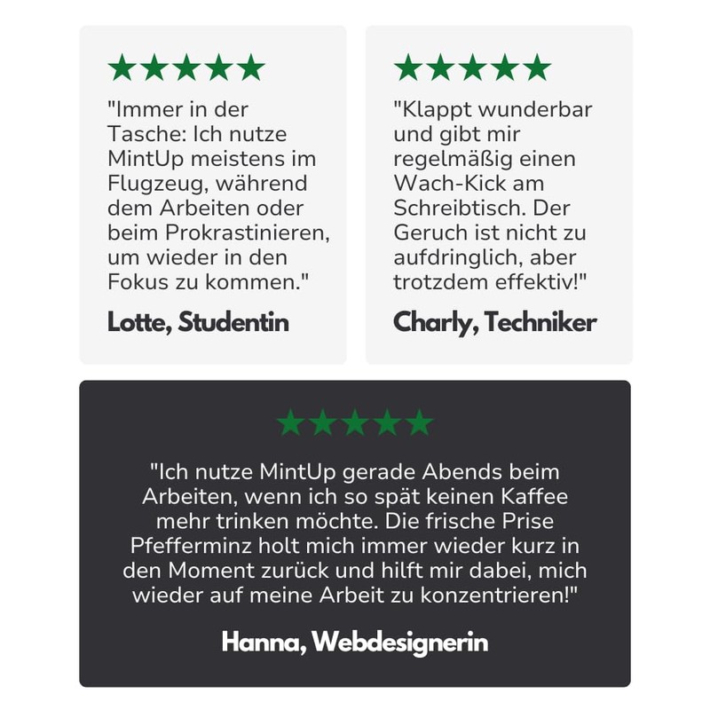 - Refreshing aroma stick for inhalation: the MintUp inhaler pen refreshes you in everyday life, motivates you during sports and increases your concentration at work.