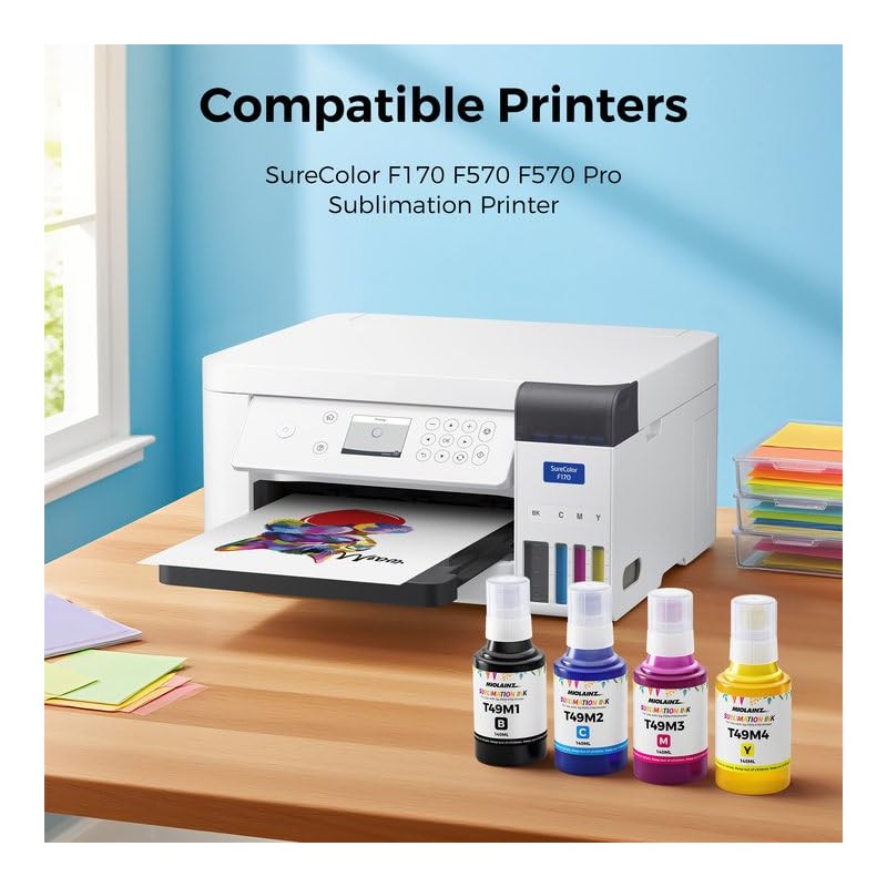 - [Specifically Designed] MIOLAINZ T49M sublimation ink compatible for Epson f170 sublimation printer and Epson f570 sublimation printer.