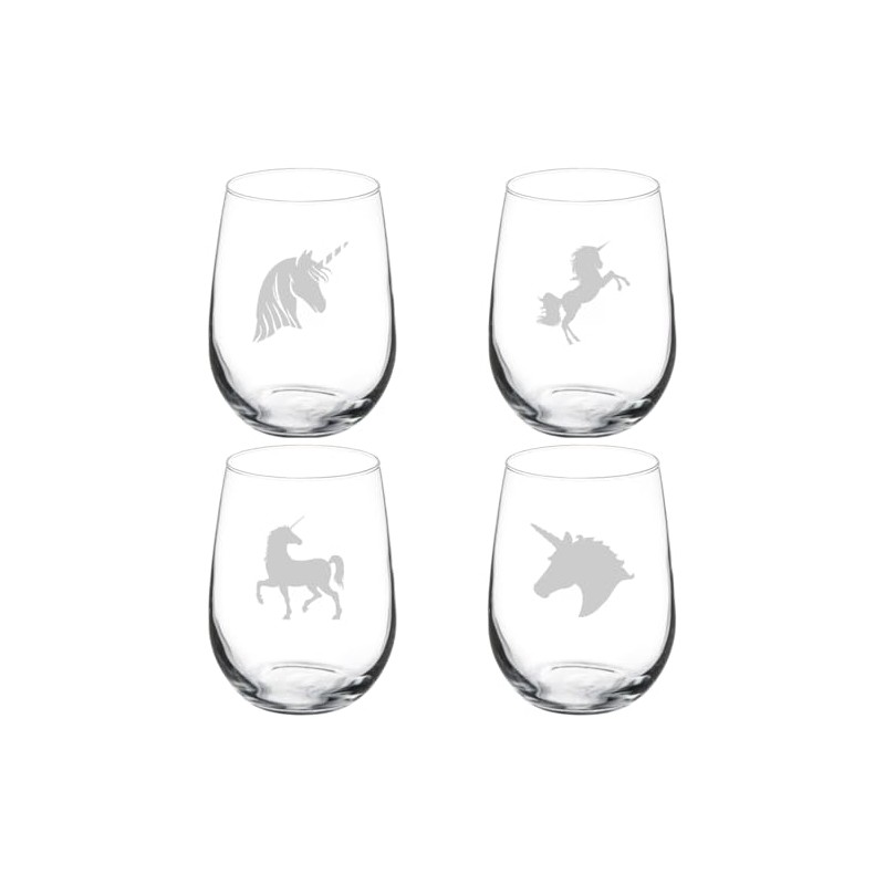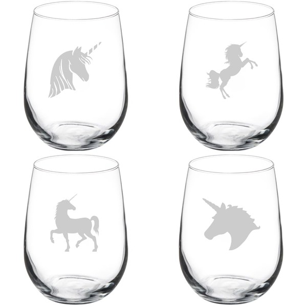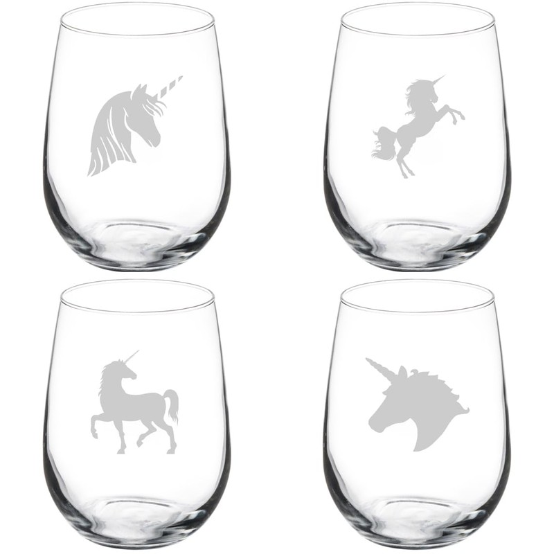 MIP Set of 4 Wine Glass Gift Unicorn Collection (17 oz Stemless)