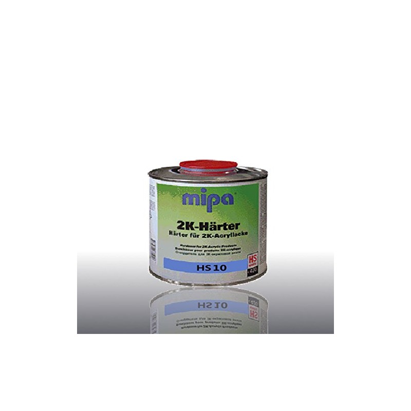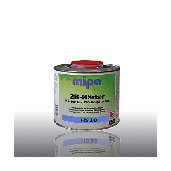 - 0.25 litre MIPA 2K HS hardener HS10 - a hardener for small parts painting or spot repair with short hardening time (optimally suited for 2K acrylic fillers and HS clear coats). VOC compliant