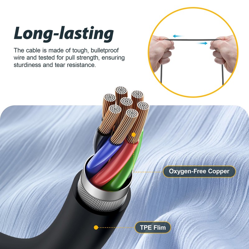 - Long-lasting: The cable is made of tough, bulletproof wire and tested for pull strength, ensuring sturdiness and tear resistance