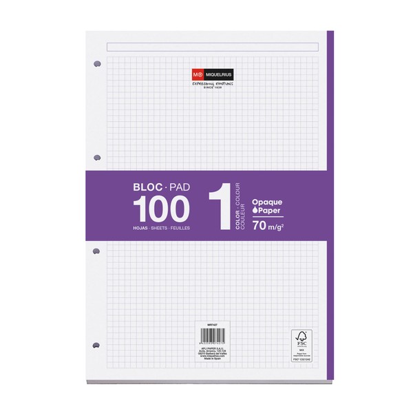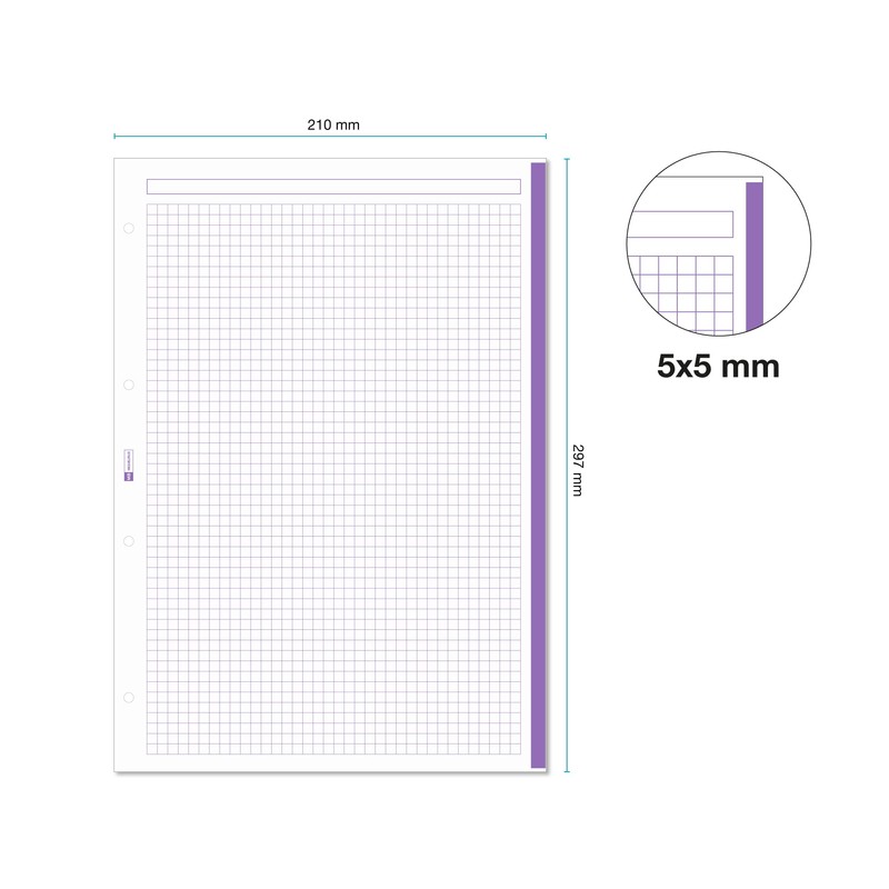 - 5 x 5 mm squared and opaque extra paper 70 gm, with 4 holes for your folders
