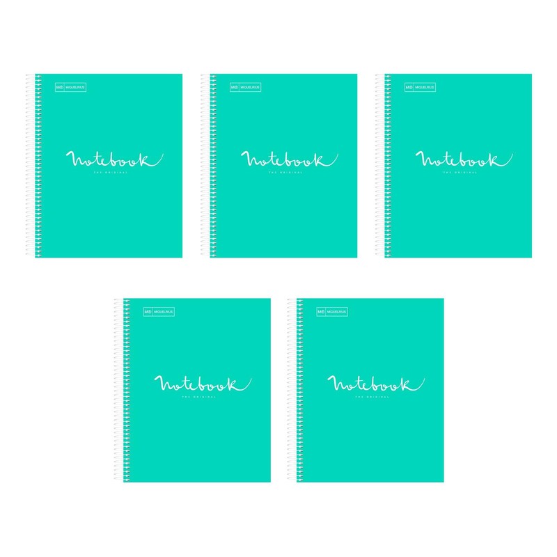 Miquel Rius Case of 5 M Emotions 1 Subject Notebooks, Lined 11" x 8.5", 80 Sheets Heavy Weight Paper, 3 Hole Punched, Micro-Perforated, Turquoise Board Cover