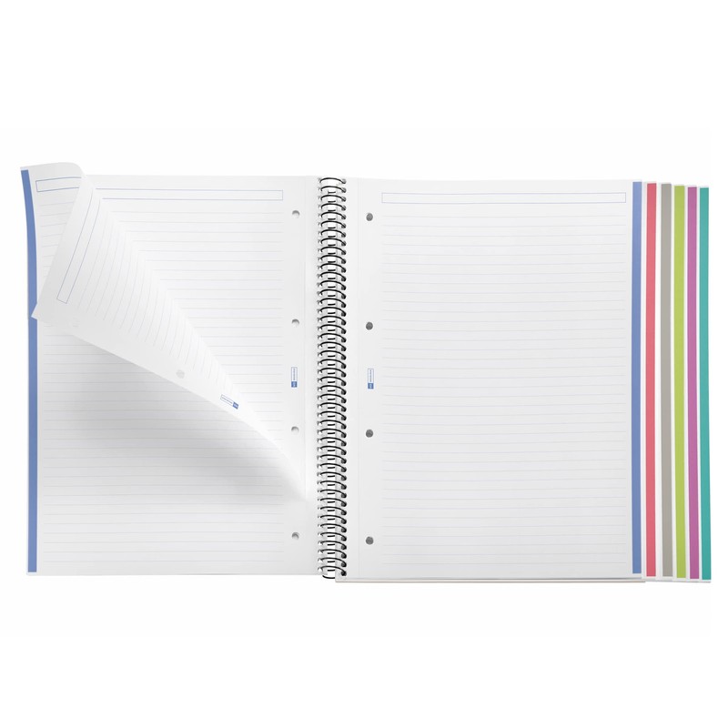 - A4 notebook with 6 colour strips for better organisation by subject or subject. 150 sheets (25 per colour) micro-perforated for clean tearing and 4-hole holes for filing