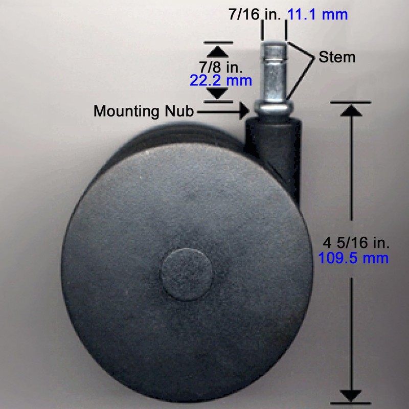 • Caster stem is 7/16" diameter. See photos above and description below for other dimensions.