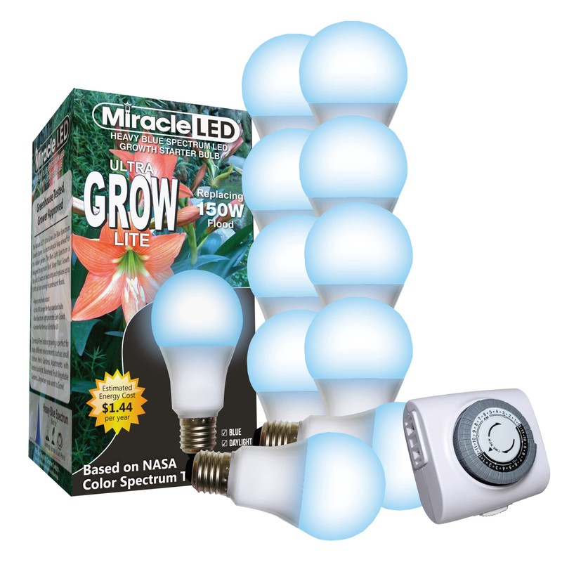 Miracle LED 12W Blue Spectrum Ultra Grow Light Replacing 150W (8-Pack) with Bonus SproutMatic Grow Light Timer