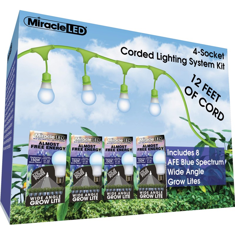 Miracle LED 8-Socket 12ft Corded System Kit with 8 Lights with with Blue Spectrum Almost Free Energy Wide Angle Grow Lites