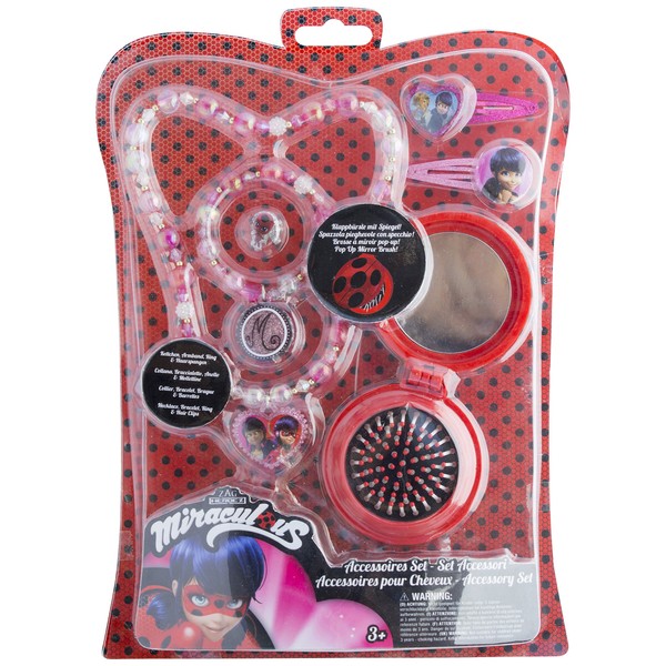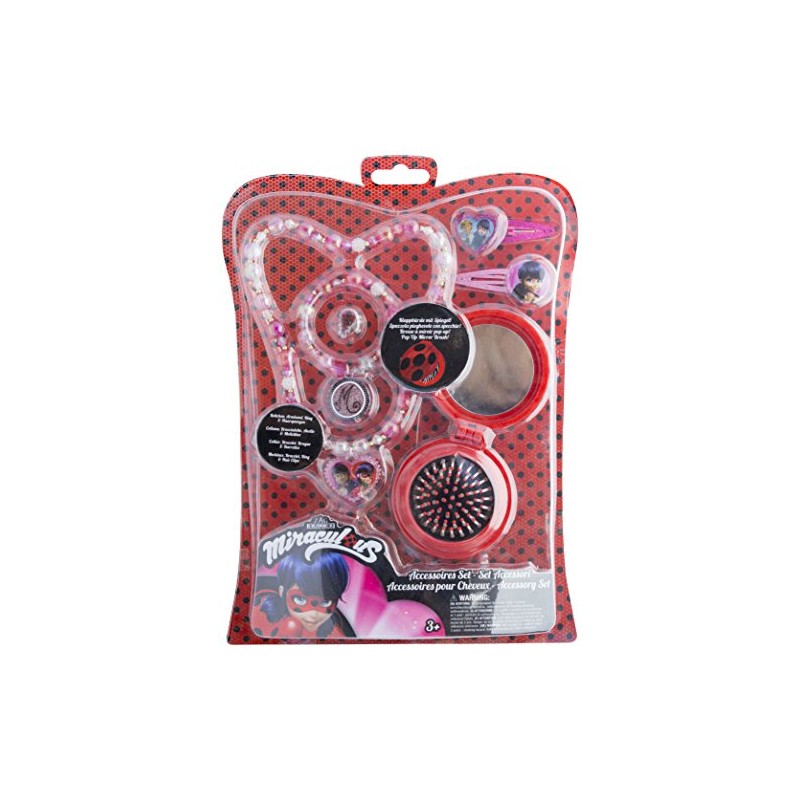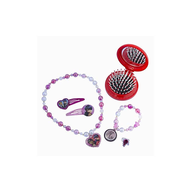 - Contents: 2 glitter hair clips, pearl chain, pearl bracelet, ring and pop up brush with mirror