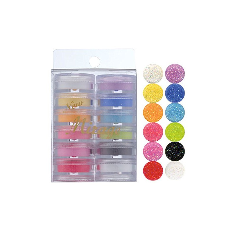 Mirage Color Powder, N/WP, CP 0.1 oz (3.5 g), Set of 12 Colors, Plenty of Small Glitter Colors