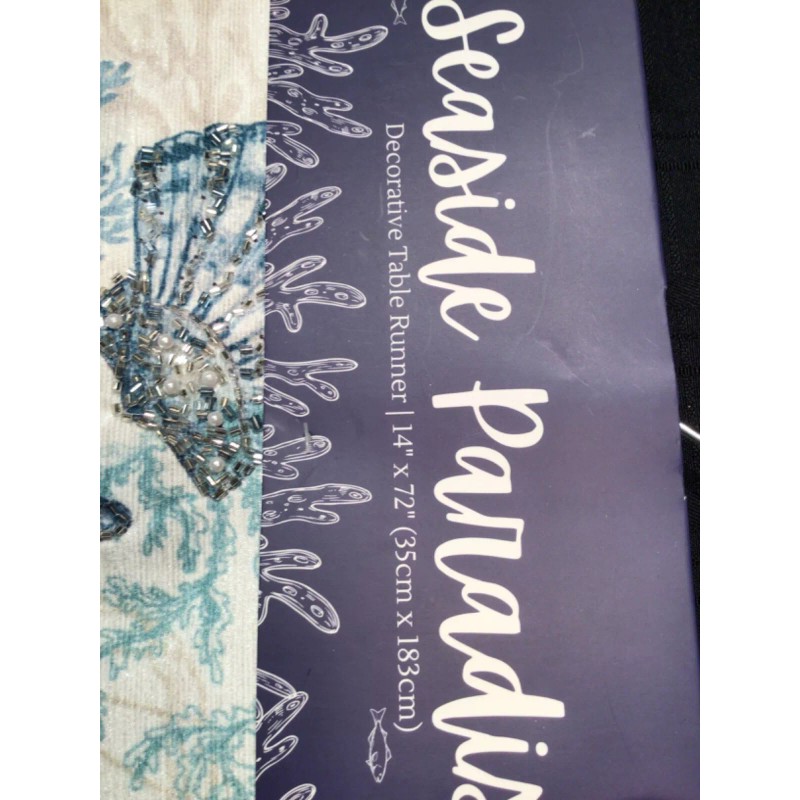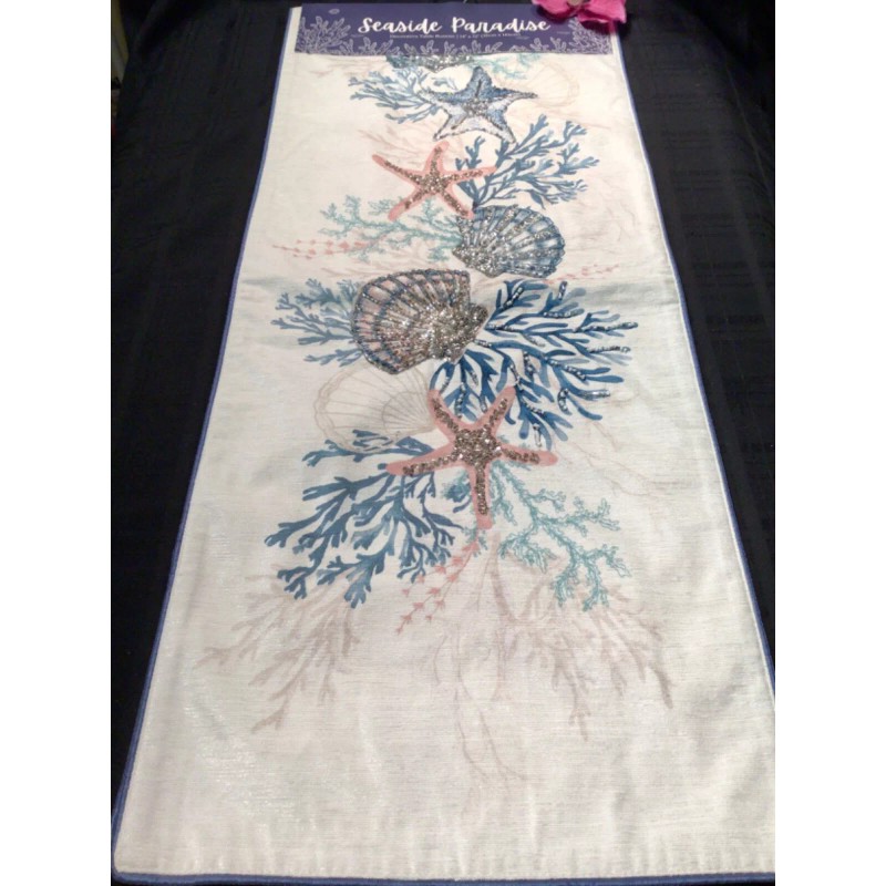 • Model: 14 x 72 accent beaded sea shells table runner
