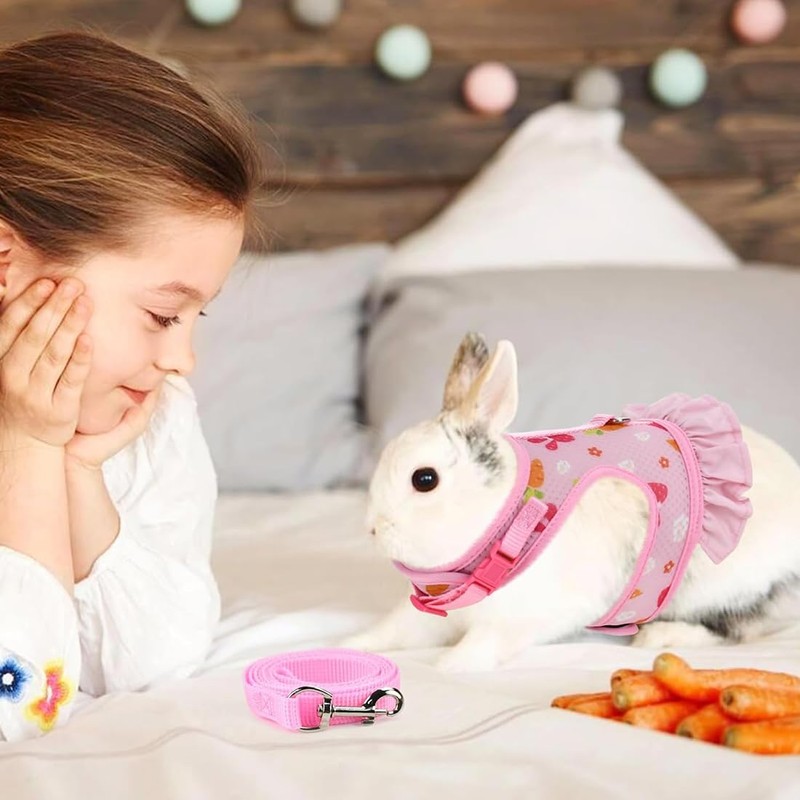MIRKUZI Kleintiergeschirr 1 Stück Kaninchenwestengeschirr, verstellbares Kaninchengeschirr und Leine, atmungsaktive Netzweste, weiches Geschirr, Kaninchenleine für Kaninchen, Kätzchen