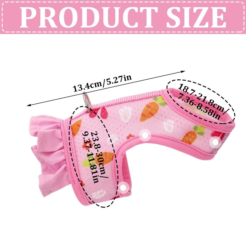 - Verstellbar: Mit verstellbaren Riemen + selbstklebenden Befestigungen. Schaltflächen können individuell angepasst werden. Die Enge kann je nach Brustumfang des kleinen Hauskaninchens angepasst werden, um ein Ausbrechen des Kaninchens zu verhindern.