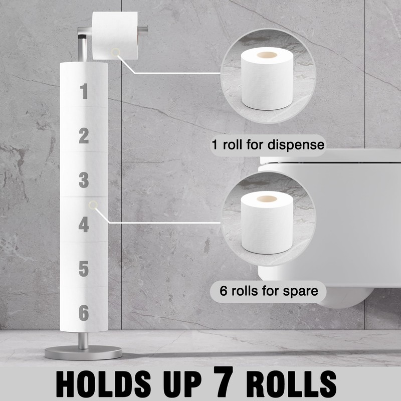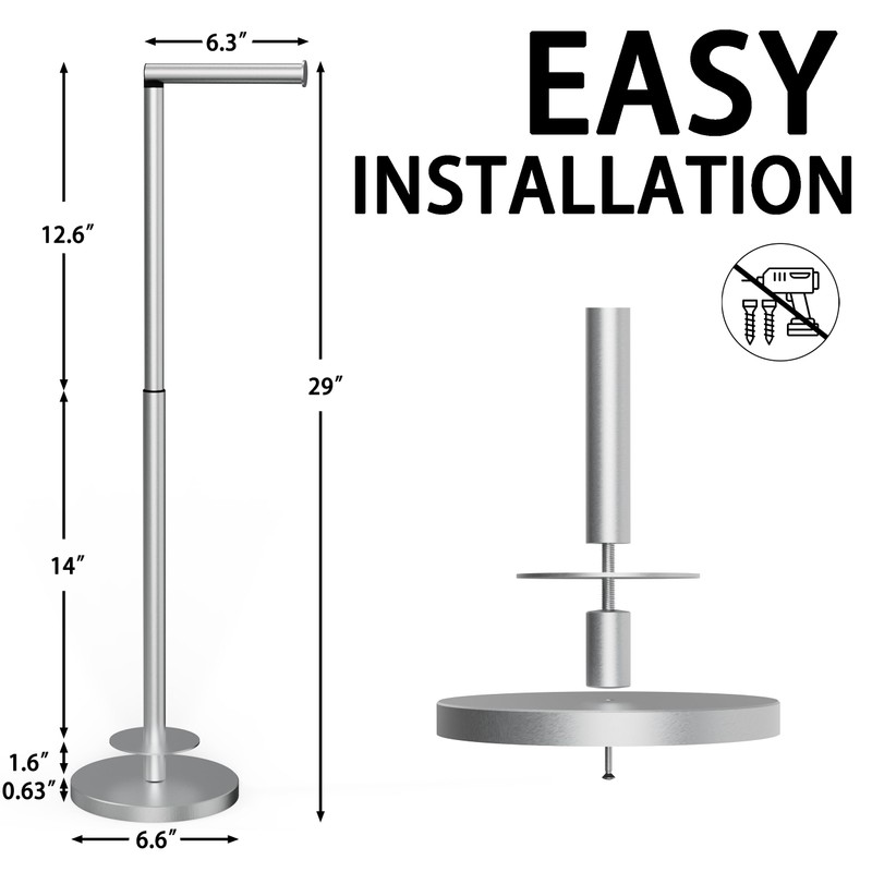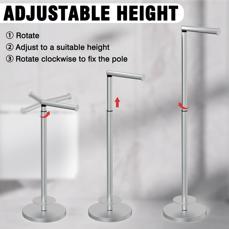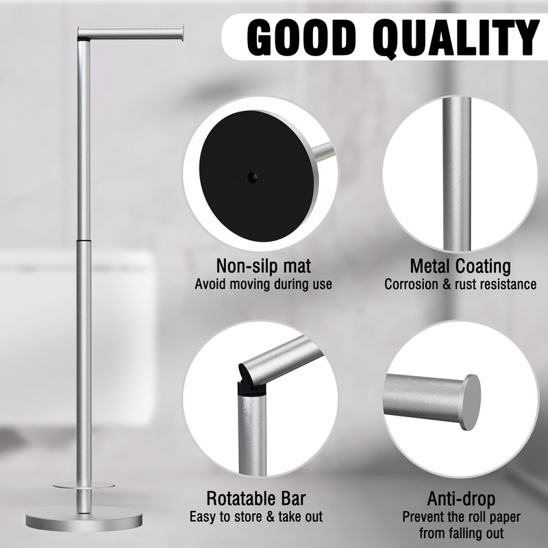 - Adjustable Height - The Free-standing Toilet Paper Holder features an adjustable height design. Allows users of different heights to customize the position of the toilet paper, eliminating the need to bend down to reach it. Friendly experience for everyone in the family.