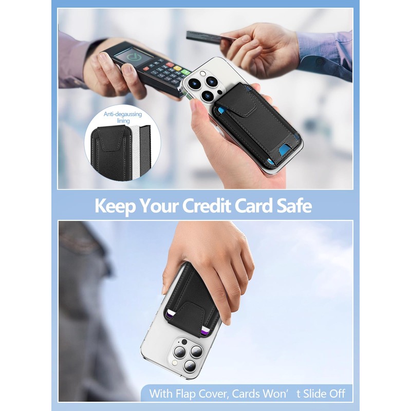 - RFID Blocking: Our iphone magsafe wallet offers the best solution for unpredictable risks from RFID and NFC scanning; Keeps your credit cards safe from unauthorized scanners and provides degauss protection for your cards to prevent demagnetization