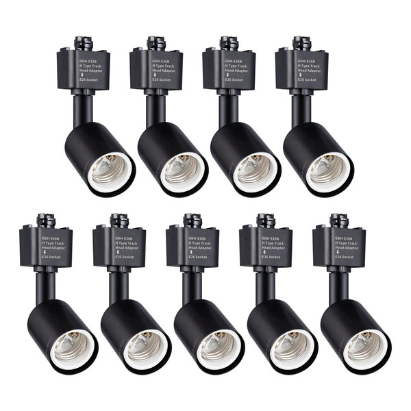mirrea H Type Track Lighting Head to E26 Medium Screw Base Adapter Light Direction Adjustable Pack of 9 (Black)