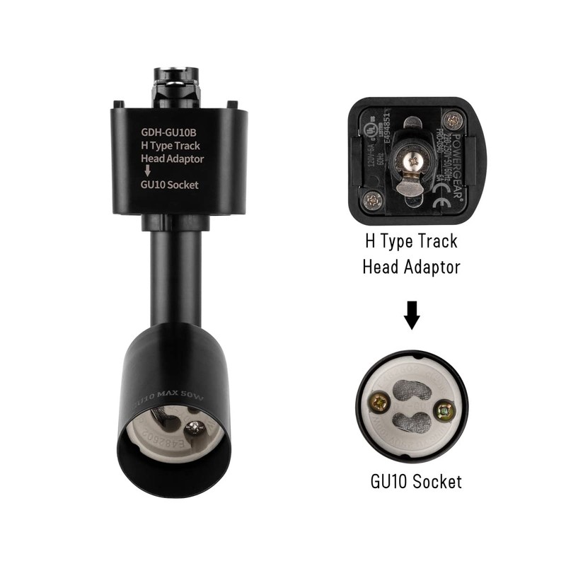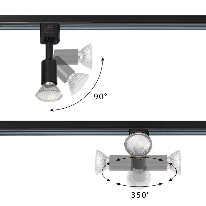 mirrea H Type Track Lighting Head to GU10 Base Adapter Light Direction Adjustable Pack of 12 (Black)