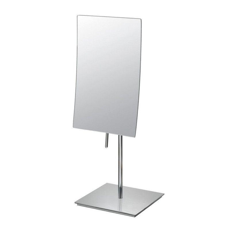 The Minimalist Rectangular Free Standing mirror is the perfect combination of simplicity and elegance. The 3X magnified mirror has a 5" x 8" viewing area and is 13. 75" tall. A small &joy stick; at the bottom of the lens allows you to tilt or swivel the mirror in any direction for the best viewing angle possible.