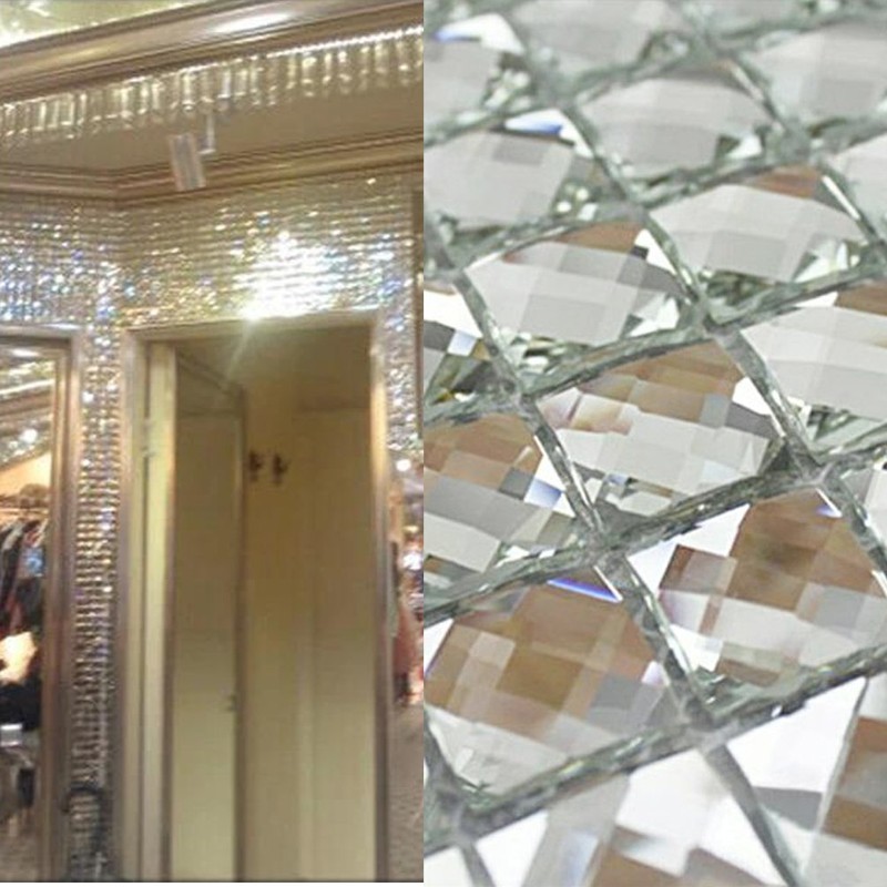 Mirror Tiles Silver Bathroom Wall Sheets Crystal Diamond Mosaic Tile Backsplash Kitchen Bevel Glass Subway Home Improvement Materials [Pack of 11PCS(12x12x0.16 Inches/Each)]