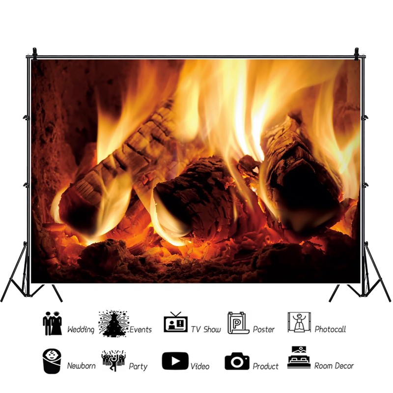 MIRRORANG 1,5x1m Fireplace Backdrop Burning Firewood Blazing Flame Burning Fire Photography Background for Christmas Party Children Kids Adult Portrait Photo Shoot Studio Props, Vinyl
