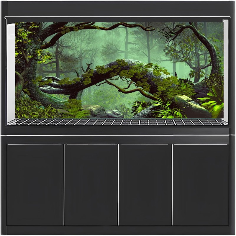 MIRRORANG 76 x 46 cm Foggy Forest Terrarium Background Stone Green Tree Tropical Reptiles Habitat Background Rainforest Aquarium Background Vinyl Background