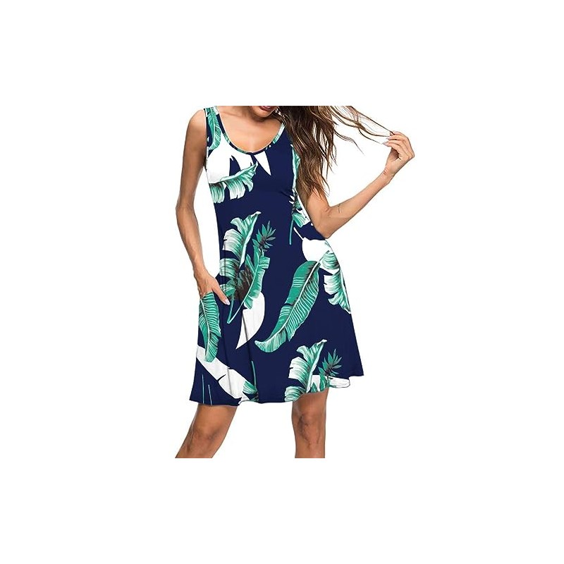 MISFAY Women's Summer Casual T Shirt Dresses Beach Cover up Tank Dress(Print Blue,L)