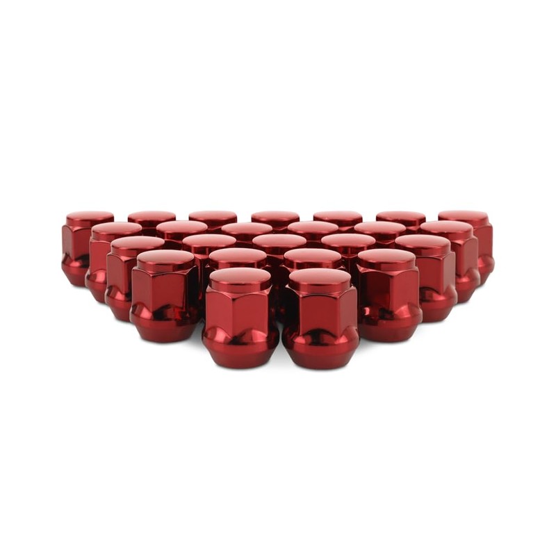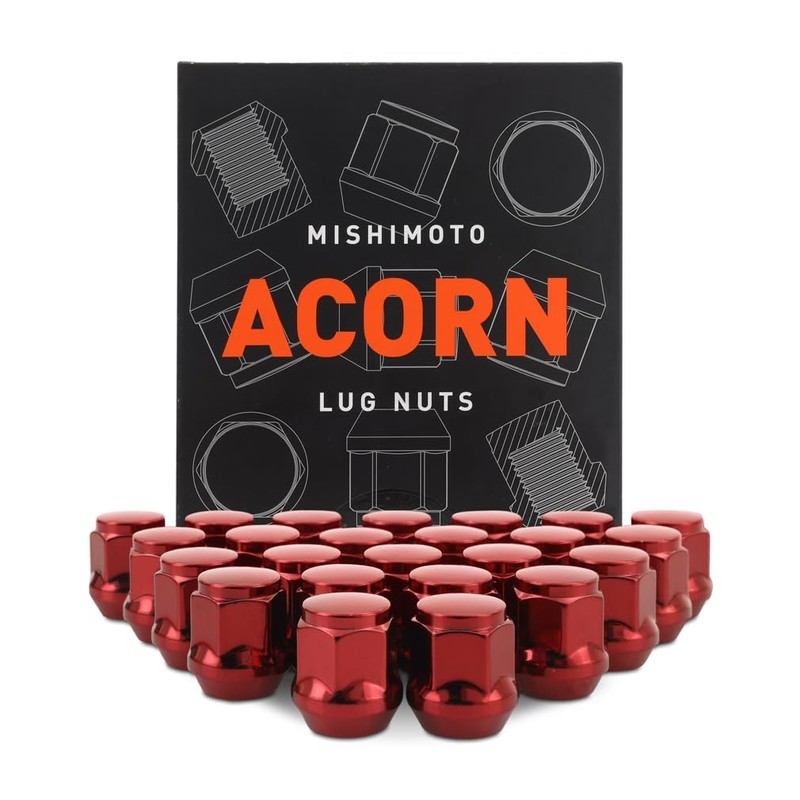 Mishimoto Steel Lug Nuts, M14x1.5, Acorn Seat, 24pc Set, Red