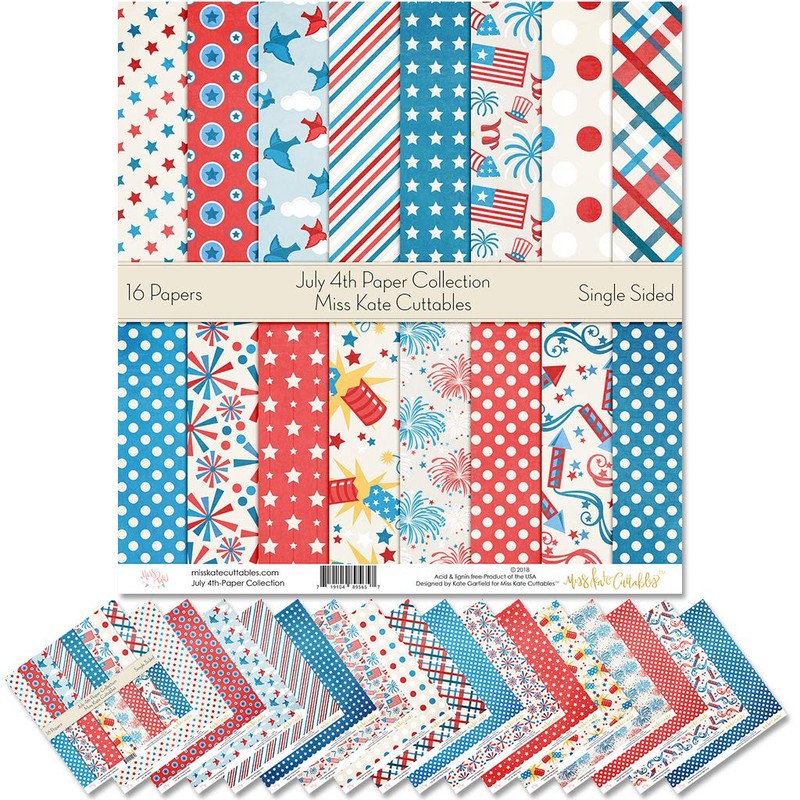 - CUTE DESIGNS: The 4th July paper pack has a variety of patterns including polka dots, stripes, plaid, stars, fireworks, American flag, USA, Uncle Sam, birds, clouds, gift wrap, red, white and blue. Holiday summer time independence day fireworks.
