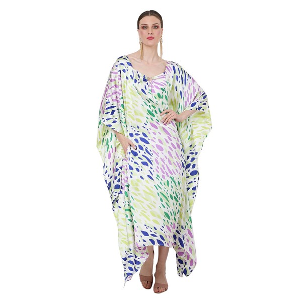 Whether you're relaxing at home, enjoying a day out, or on a sun-soaked vacation, these kaftans offer versatile wearability with their breezy Poly Satin fabric. The machine-washable material and easy pull-on closure mean less time on care and more time for you.