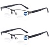 Missfive 2 Pack Far-Near Dual-Use Bifocal Reading Glasses for Men, Wider-Reading-Area Durable Spring Hinge Readers, Quality Blue Light Blocking Metal Half Frame Eyeglasses, 3.0x