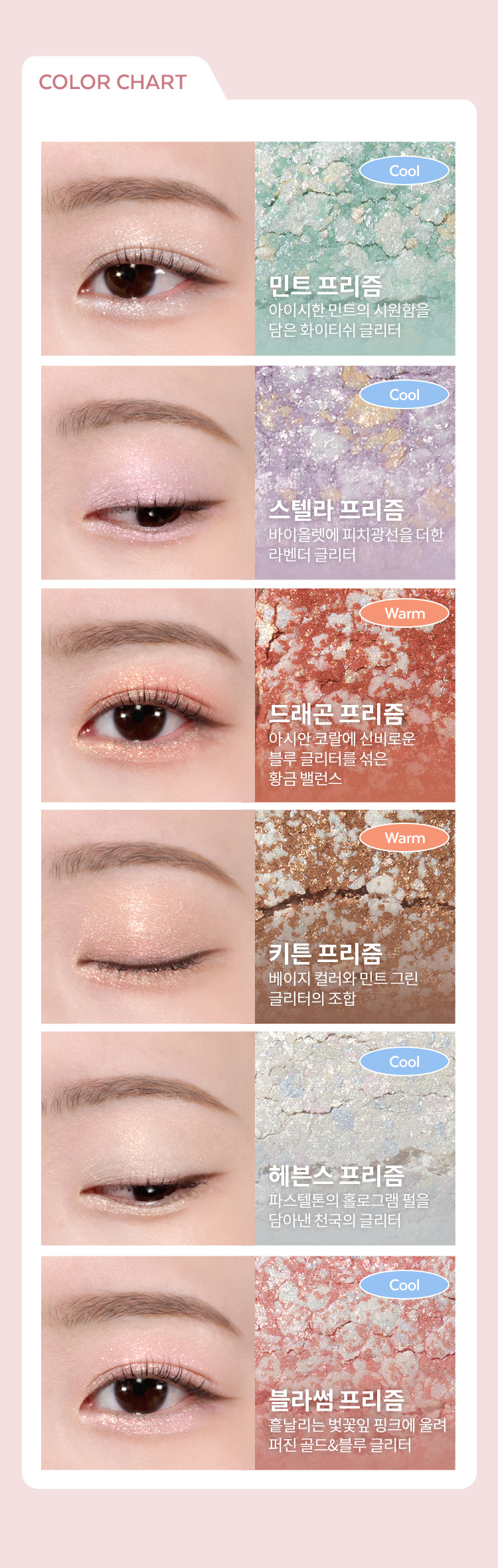 - Ingredients: [Heaven's Prism] Calcium Titanium Borosilicate,Calcium Aluminum Borosilicate,Calcium Sodium Borosilicate, Titanium Dioxide,Mica,Propylene Glycol Dibenzoate,Ethylhexyl Palmitate,Zinc Stearate, Diisostearyl Malate,Dipentaerythrityl Hexahydroxystearate/Hexastearate/Hexarosinate,Silica,Vinyl Dimethicone/Methicone Silsesquioxane Crosspolymer, Tin Oxide,Phenoxyethanol,Synthetic Fluorphlogopite, Amethyst PowderPearl Powder,Orbignya Oleifera Seed Oil,Punica Granatum Seed Oil,Simmondsia Chinensis (Jojoba) Seed Oil,Dimethicone,Ruby PowderSapphire Powder,Iron Oxide Red,Dimethicone/Vinyl Dimethicone Crosspolymer,Diamond Powder, Carmine,Ferric Ferrocyanide [Blossom Prism] Calcium Titanium Borosilicate,Titanium Dioxide,Calcium Sodium Borosilicate, Mica,Calcium Aluminum Borosilicate,Propylene Glycol Dibenzoate,Ethylhexyl Palmitate,Zinc Stearate, Diisostearyl Malate,Dipentaerythrityl Hexahydroxystearate/Hexastearate/Hexarosinate,Synthetic Fluorphlogopite, Vinyl Dimethicone/Methicone Silsesquioxane Crosspolymer, Silica,Tin Oxide,Phenoxyethanol,Helindone Pink CN, Allura Red, Dimethicone,Amethyst PowderPearl Powder,Orbignya Oleifera Seed Oil,Punica Granatum Seed Oil,Simmondsia Chinensis (Jojoba) Seed Oil,Ruby PowderSapphire Powder,Dimethicone/Vinyl Dimethicone Crosspolymer,Diamond Powder [Keaton Prism] Calcium Titanium Borosilicate,Titanium Dioxide,Calcium Aluminum Borosilicate,Calcium Sodium Borosilicate, Mica,Propylene Glycol Dibenzoate,Ethylhexyl Palmitate,Zinc Stearate, Diisostearyl Malate,Dipentaerythrityl Hexahydroxystearate/Hexastearate/Hexarosinate,Iron Oxide Red,Silica,Vinyl Dimethicone/Methicone Silsesquioxane Crosspolymer, Synthetic Fluorphlogopite, Tin Oxide,Phenoxyethanol,Iron Oxide Black,Amethyst PowderPearl Powder,Orbignya Oleifera Seed Oil,Punica Granatum Seed Oil,Simmondsia Chinensis (Jojoba) Seed Oil,Dimethicone,Ruby PowderSapphire Powder,Dimethicone/Vinyl Dimethicone Crosspolymer,Diamond Powder [Stellar Prism] Calcium Aluminum Borosilicate,Calcium Sodium Borosilicate, Titanium Dioxide,Calcium Titanium Borosilicate,Mica,Propylene Glycol Dibenzoate,Ethylhexyl Palmitate,Silica,Diisostearyl Malate,Zinc Stearate, Dipentaerythrityl Hexahydroxystearate/Hexastearate/Hexarosinate,Vinyl Dimethicone/Methicone Silsesquioxane Crosspolymer, Tin Oxide,Phenoxyethanol,Synthetic Fluorphlogopite, Ultramarines,Helindone Pink CN, Amethyst PowderPearl Powder,Dimethicone,Orbignya Oleifera Seed Oil,Punica Granatum Seed Oil,Simmondsia Chinensis (Jojoba) Seed Oil,Sunset Yellow FCF,Ruby PowderSapphire Powder,Dimethicone/Vinyl Dimethicone Crosspolymer,Diamond Powder [Dragon Prism] Calcium Titanium Borosilicate,Calcium Aluminum Borosilicate,Calcium Sodium Borosilicate, Titanium Dioxide,Mica,Propylene Glycol Dibenzoate,Ethylhexyl Palmitate,Zinc Stearate, Diisostearyl Malate,Dipentaerythrityl Hexahydroxystearate/Hexastearate/Hexarosinate,Silica,Vinyl Dimethicone/Methicone Silsesquioxane Crosspolymer, Synthetic Fluorphlogopite, Tin Oxide,Iron Oxide Red,Lithol Rubine B, Phenoxyethanol,Iron Oxide Yellow,Sunset Yellow FCF,Amethyst PowderPearl Powder,Iron Oxide Black,Orbignya Oleifera Seed Oil,Punica Granatum Seed Oil,Simmondsia Chinensis (Jojoba) Seed Oil,Dimethicone,Ruby PowderSapphire Powder,Dimethicone/Vinyl Dimethicone Crosspolymer,Diamond Powder [Mint Prism] Calcium Titanium Borosilicate,Calcium Aluminum Borosilicate,Mica,Titanium Dioxide,Calcium Sodium Borosilicate, Propylene Glycol Dibenzoate,Ethylhexyl Palmitate,Diisostearyl Malate,Zinc Stearate, Dipentaerythrityl Hexahydroxystearate/Hexastearate/Hexarosinate,Vinyl Dimethicone/Methicone Silsesquioxane Crosspolymer, Silica,Tin Oxide,Synthetic Fluorphlogopite, Phenoxyethanol,Brilliant Blue FCF,Amethyst PowderTartrazine,Pearl Powder,Hydrogenated Polyisobutene,Dimethicone,Orbignya Oleifera Seed Oil,Punica Granatum Seed Oil,Simmondsia Chinensis (Jojoba) Seed Oil,Ruby PowderSapphire Powder,Iron Oxide Red,Sunset Yellow FCF,Palmitic Acid,Dimethicone/Vinyl Dimethicone Crosspolymer,Diamond Powder, Benzoic Acid