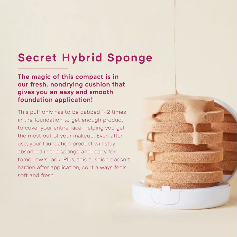 • Magic Cushion sponge for a quick & easy makeup application! Lightweight adherence, buildable coverage, moisturizing, and sun protection benefits with SPF50+/PA+++