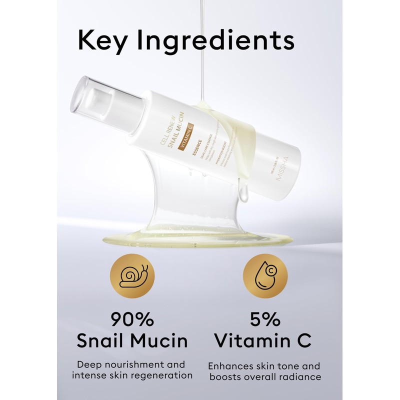 - Korean Skincare Innovation: Embrace the essence of Korean skincare with our Cell Renew Snail Mucin Vitamin C Essence Serum. Infused with % Snail Mucin Vita Complex, this serum improves skin texture and enhances complexion for a rejuvenated look.