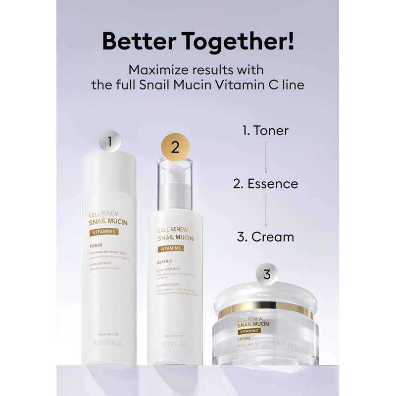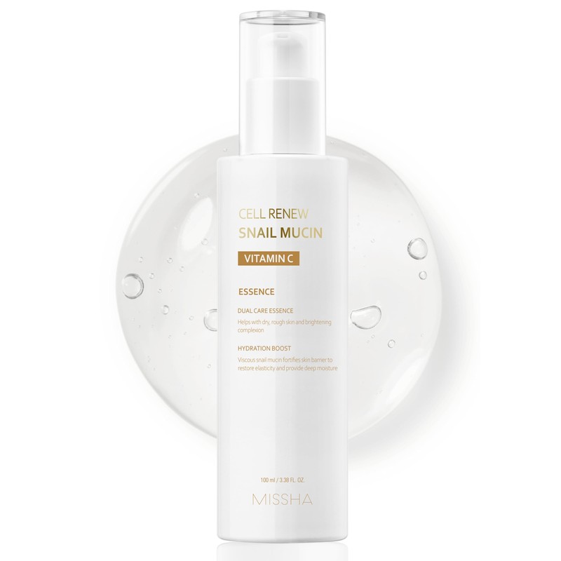 MISSHA MISSHA Cell Renew Snail Mucin Vitamin C Essence Serum 3.38 Fl oz - Hydrating Korean Skincare for Glass Skin, Snail Mucin Serum for Improved Skin Texture & Complexion