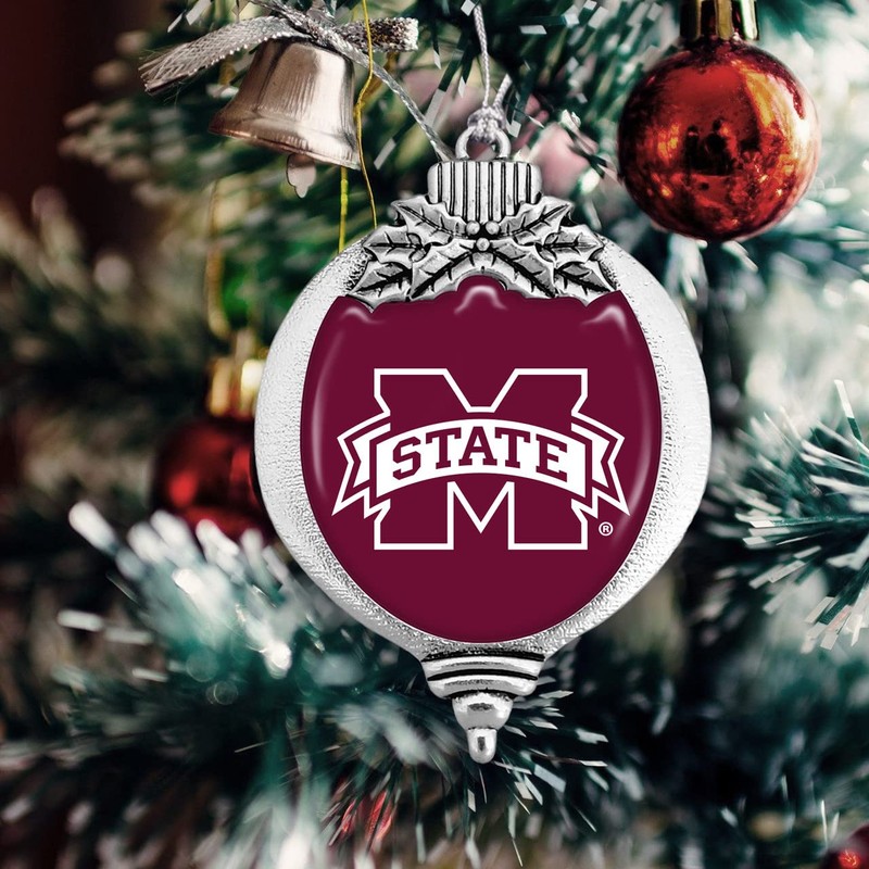 Mississippi State Bulldogs MSU Bulb with Team Logo Silver Metal Christmas Ornament Gift Tree Decoration